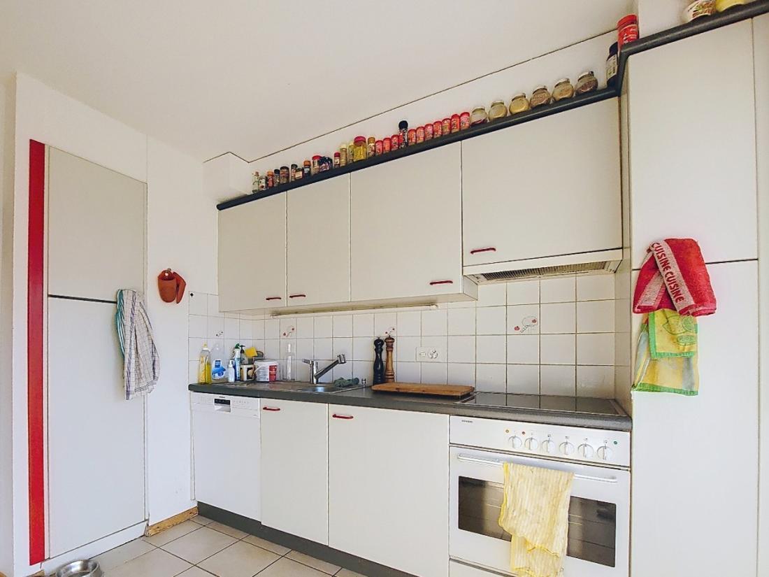L’espace jour, clair et lumineux, se compose d’un hall de distribution avec rangements intégrés, d’une cuisine fermée et d’un spacieux séjour. L’appartement a été bien entretenu mais il mérite quelques travaux de mise au goût du jour.