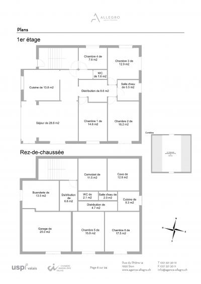Le volume est impressionnant pour puisqu’il atteint 1'200 m3 (selon SIA 416) sur 315 m2 de surface habitable brute, sans considérer les combles. En surface habitable nette (= m2 balayables), la distribution des pièces s’organise de la manière suivante :