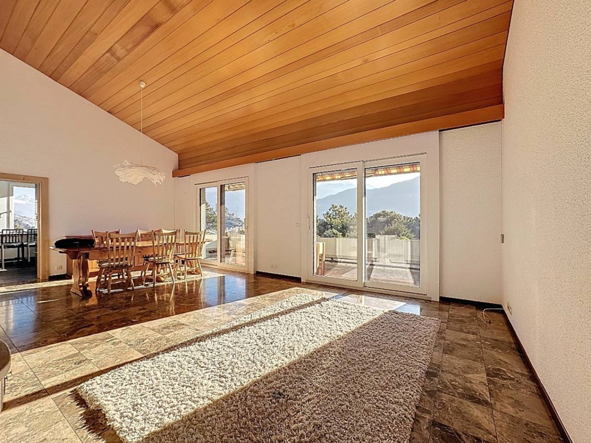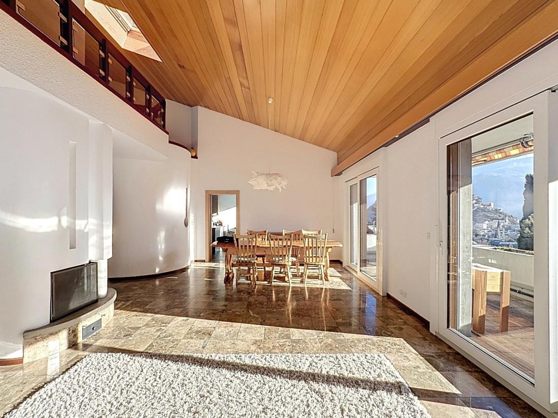 Ce superbe duplex en attique de 239 m2 et de 7.5 pièces se situe au 2ième étage de l’immeuble « Gravelone 58 », à la route de Gravelone 58, dans le quartier résidentiel très prisé de Gravelone à Sion. Cet objet d’exception se trouve au sein d’une petite PPE de seulement 8 appartements, répartis sur deux entrées. L’immeuble, construit en 1984, bénéficie d’une magnifique terrasse offrant une vue imprenable sur Valère et Tourbillon ainsi que sur les Alpes valaisannes.