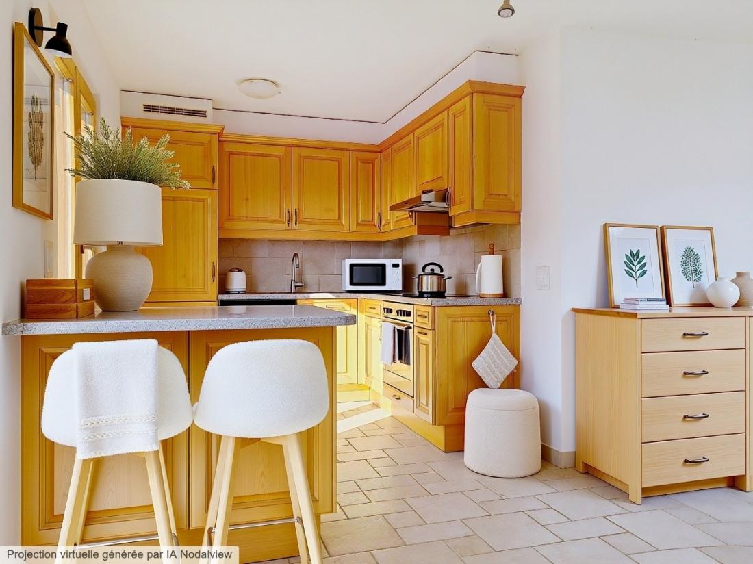 Entretenu avec soin, ce bien a été pensé avec des matériaux sobres et ne nécessite aucuns travaux conséquents. Sa disposition fonctionnelle offre tout le confort nécessaire. Au rez-de-chaussée, la cuisine entièrement équipée s’ouvre sur un séjour baigné de lumière grâce à ses charmantes fenêtres. Un poêle à bois apporte une touche authentique et chaleureuse à l’espace de vie.